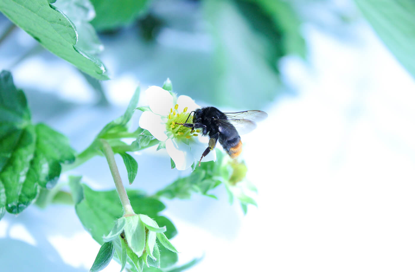 実りへのラストスパート。株は一気に大きくなり、受粉のために蜂が活躍し始めます。20ヶ月越しの初収穫には、毎年感動しています。